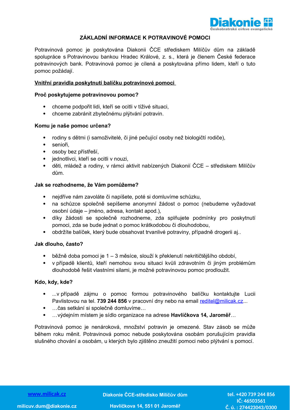 Kontakt na středisko
