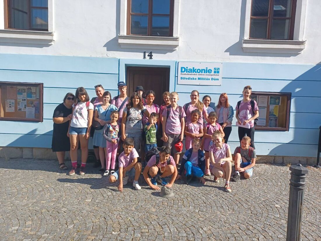Celý týden děti provázel bohatý doprovodný program s různorodými výtvarnými aktivitami proložený výlety do blízkého okolí. Hned v pondělí si lektorky tábora vyrobily s dětmi batikovaná trička, která pak všichni hrdě po celý tábor nosily. Kromě aktivit uvnitř Milíčova domu, jsme si s dětmi užili pizzu a bowling v Jaroměři, laser game v Jaroměři a kolegyně Natálie si pro děti připravila výpravu na „chatnik“, kde si děti připravily poctivý kotlíkový gulášek. V průběhu tábora jsme navštívili i Muzeum magie s kouzelnickým představením a poslední den jsme si užili výlet vlakem na Ranč u Jasanu ve Vysokově.